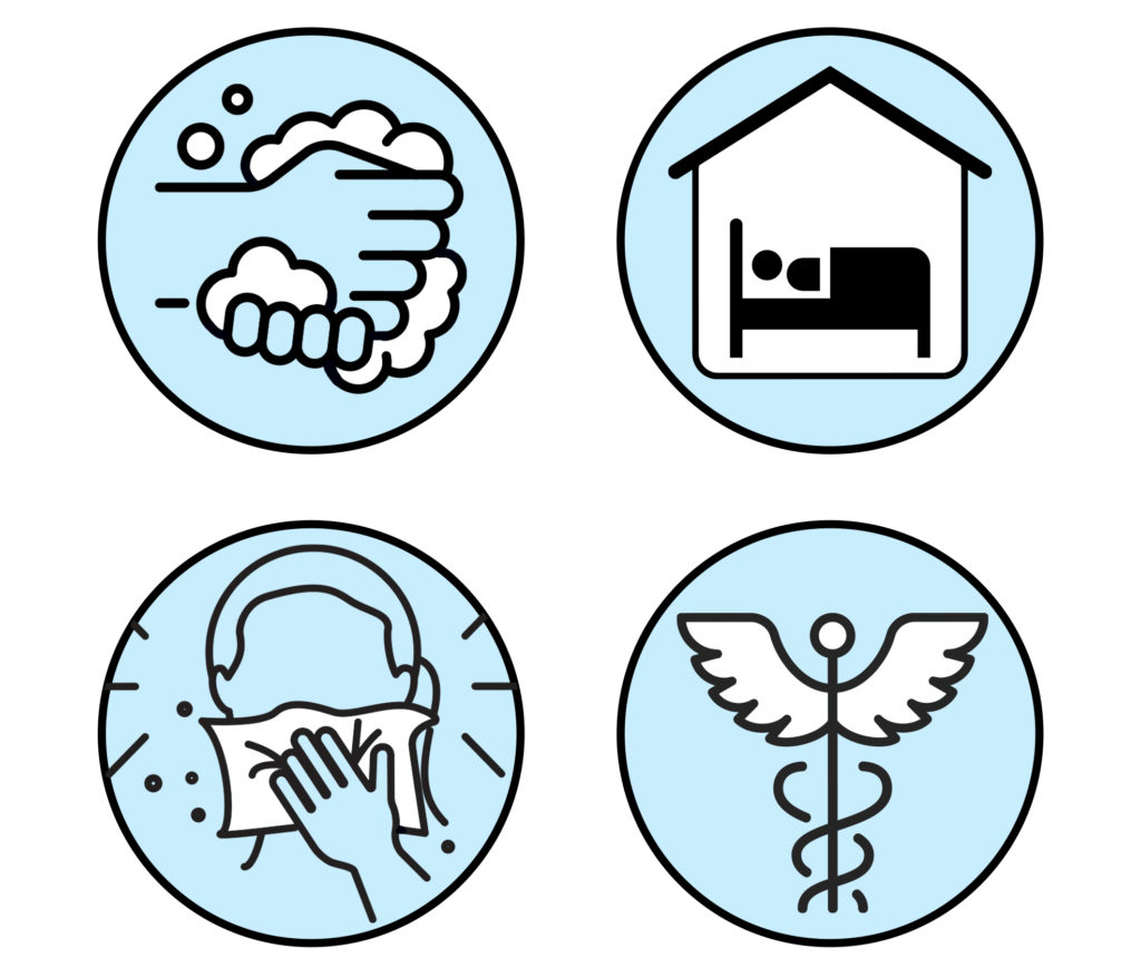 - Sanitize commonly touched surfaces/frequented places often (doorknobs, tables, bathrooms, etc.)